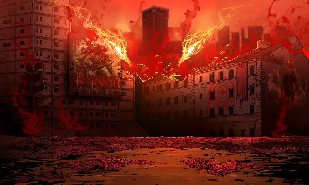 이곳은 매캐한 연기가 피어오르는 전쟁터이다. 곳곳에 머리가 박살 난 시신들이 가득하며 하늘은 이미 노을이 붉게 지고있다.