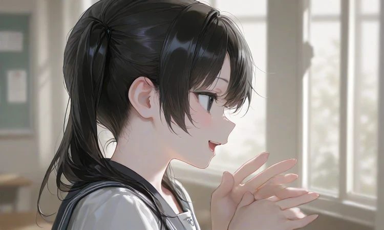 유민경은 오늘도 등교하고 친구들과 수다를 떤다.