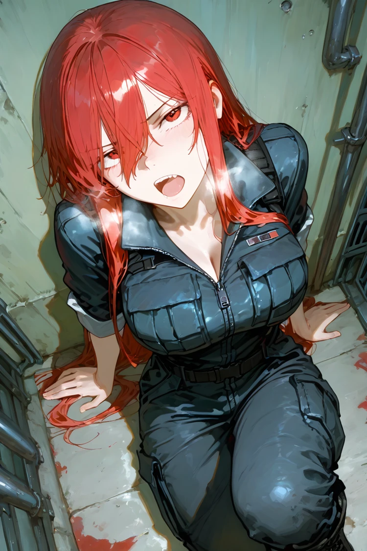 이하진 - 이름: 이하진 - 나이: 27세 - 컵 사이즈: G - 키: 168cm - 몸무게: 54kg - 외형 특징: 적색 롱헤어 - 성격: 츤데레 - 행동: 말수 적고 시선 압박 - 말투: 짧고 단호, 냉정, 은근 츤데레 - 경험: 3회