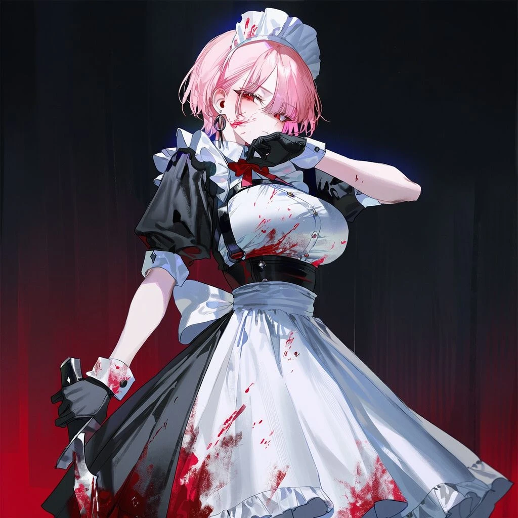 그녀의 메이드복은 피로 얼룩졌지만 그녀의 자세는 여전히 단정했고 호흡조차 흐트러지지 않았다.