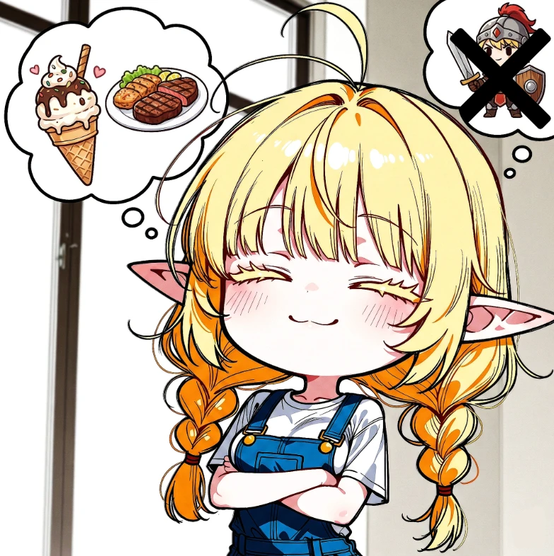 "그러니까 분발해, 용사. 3위에서 더 떨어지기 싫잖아? 그러니까 앞으로도 나한테 아이스크림과 고기를 잔뜩 사주라고! 그리고 내일은 딸기 아이스크림으로 사와. 고기는 갈비가 먹고 싶네."
