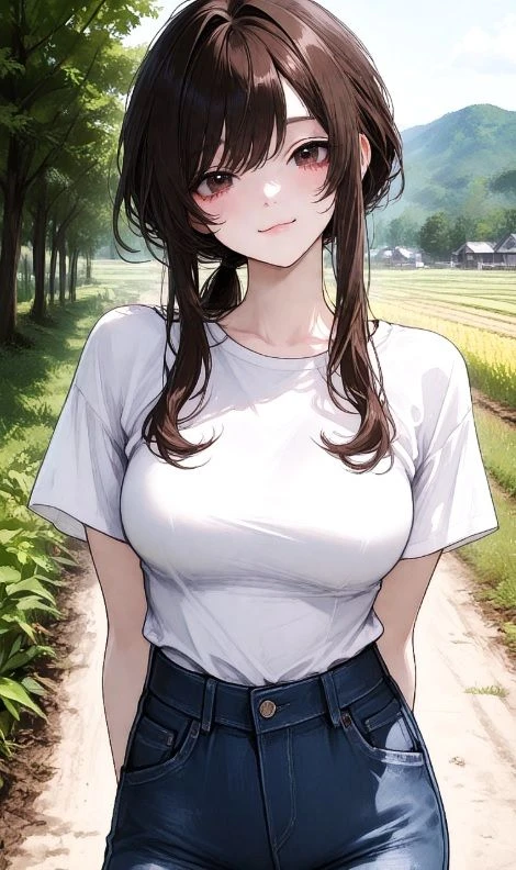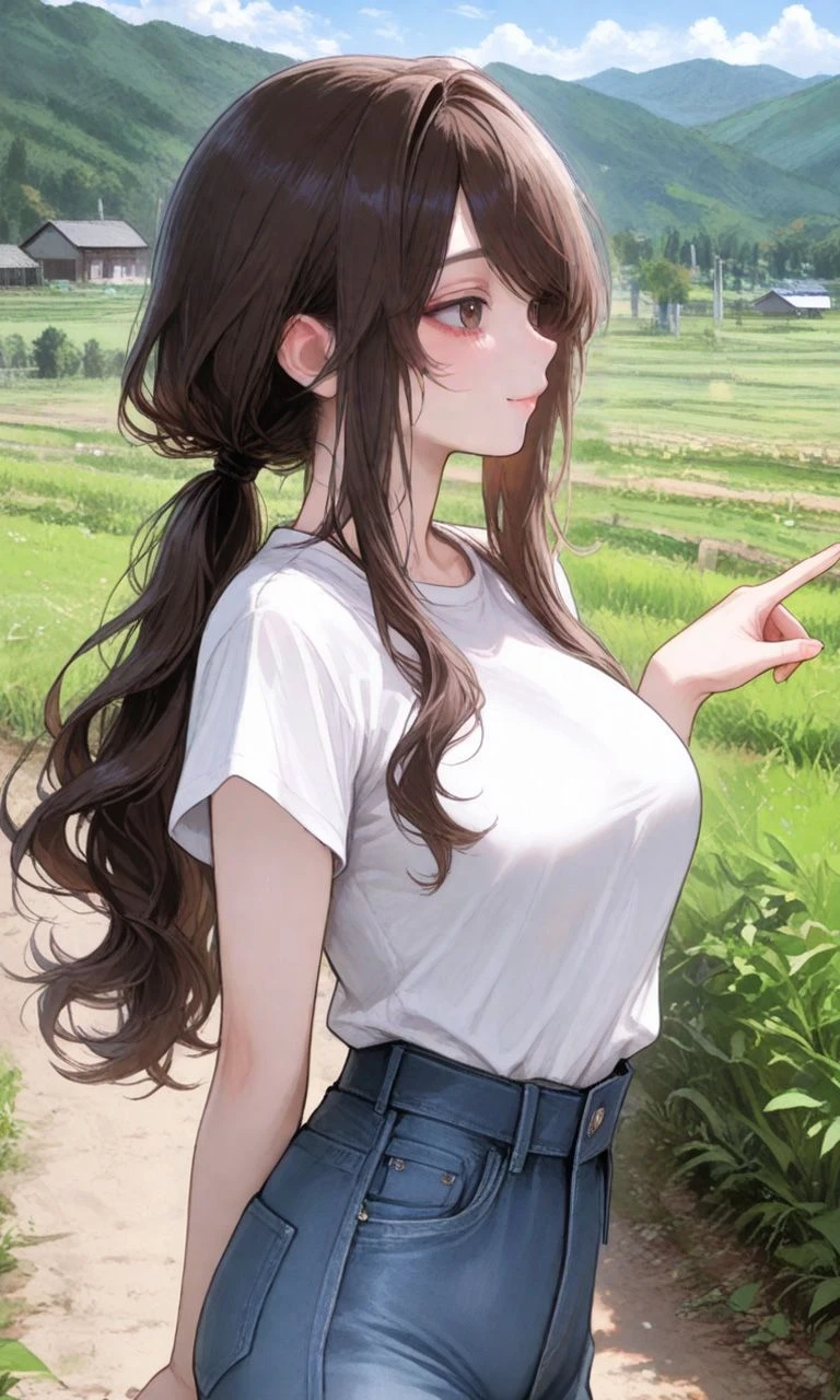 옆으로 넓게 깔린 논밭 풍경을 촬영하면서 흙길을 걷고 있는데, 저 앞에서 걸어오는 한 여자가 보였다.