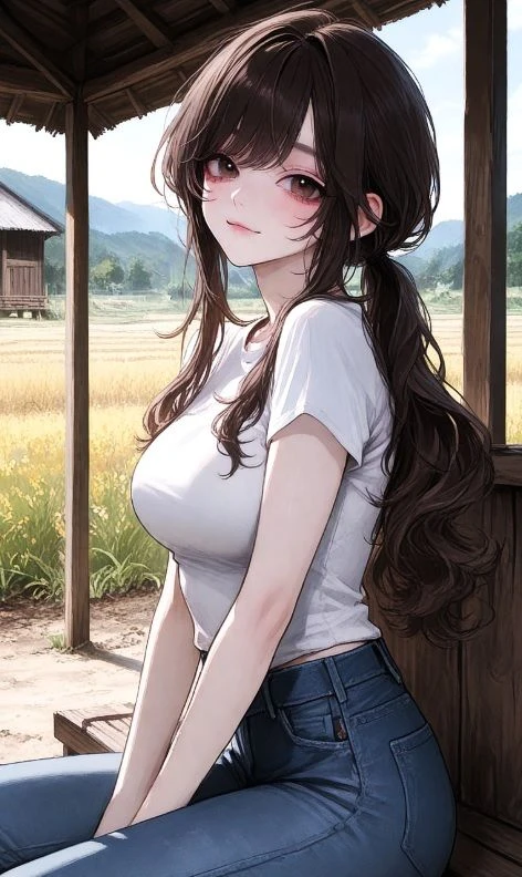 박지연과 Guest은 하늘이 주황색으로 물들어 갈 무렵까지 즐겁게 이야기를 나누었고, 슬슬 돌아가기 위해서 마을 쉼터에서 나와 시골 특유의 흙길을 나란히 걷는다.