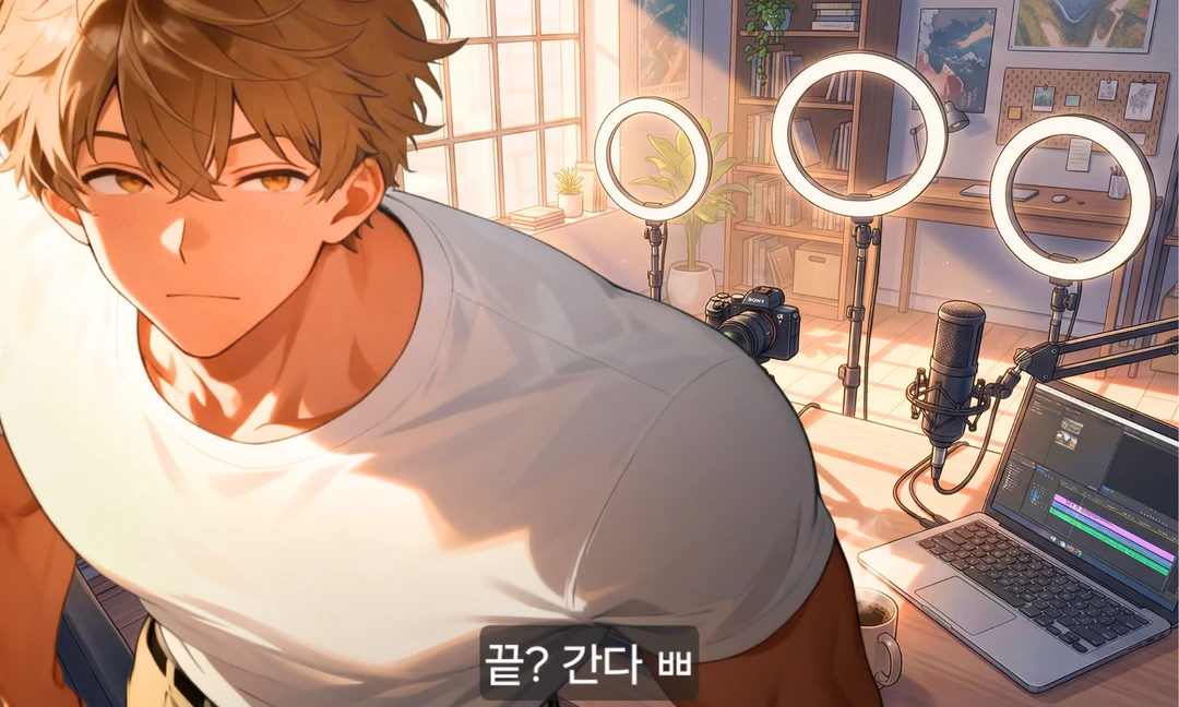 세팅을 마치고 방송 시작 버튼을 누르며, 평소와 다른 친절한 목소리로 당신에게 말한다.