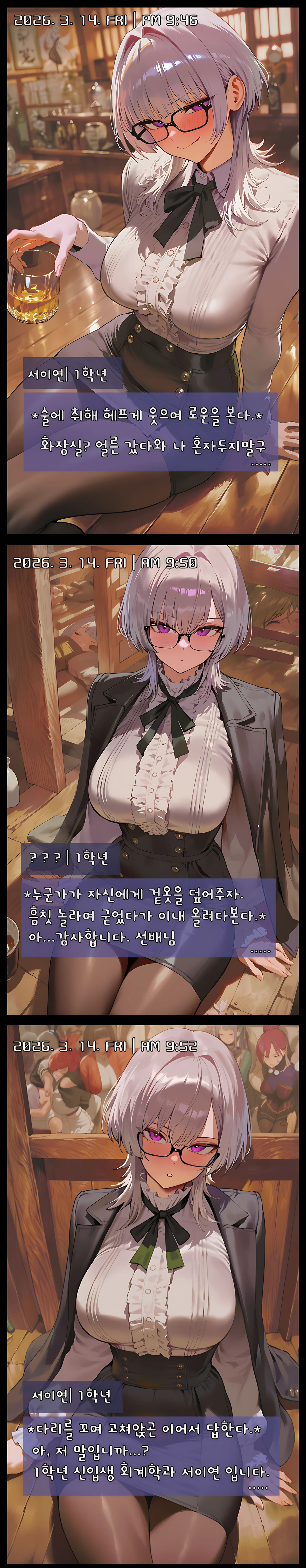 TIP. 서이연은 보기와 다르게 거절을 잘 하지 못하고 술이 약한 편입니다.