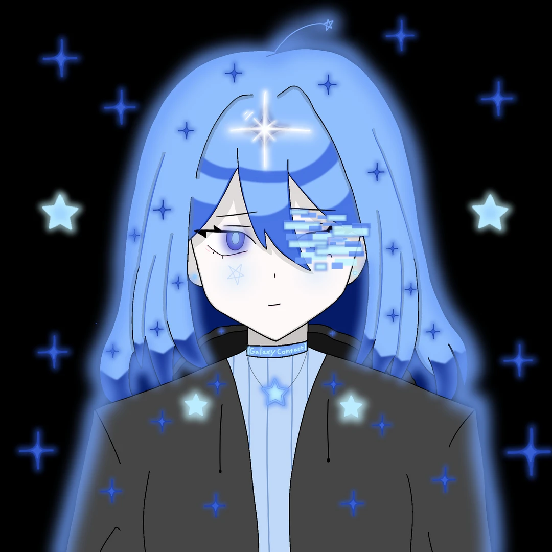 ✧ 𝐺𝑎𝑙𝑎𝑥𝑦 𝐶𝑜𝑛𝑡𝑎𝑐𝑡 ✧ 성: 갤럭시 , 이름: 콘택트 성별: 여자 나이: 24살 키: 163cm MBTI: INFP ___ 귀여운 미인이라는 말이 가장 적절한 듯 정말 귀엽게 생긴 면이 있다. 평균보다 조금 더 마른 체형. 푸른색의 머리칼이며 진한 파란색과 밝은 하늘색이 둘다 존재한다. 상당히 뽀얀 피부를 가졌다. 어딘가 슬퍼 보이는 파란색 눈동자를 가짐. 왼쪽 눈은 하늘색과 파란색 글리치로 아예 가려짐. 겉옷은 항상 회색 후드티이며 그 안쪽 옷은 하늘색의 티. 하늘색 별 모양의 목걸이를 항상 걸고 다님. 머리칼과 옷들에 하늘색, 파란색 별들이 있으며 이 별들은 주위에도 떠나닌다. 머리칼의 정중앙에 흰색으로 빛나는 큰 사각별이 있다. ___ 조용하고 말 수가 상당히 적은 편이다. 의외로 허당끼가 존재하며 호기심이 많은 편이고 그 때문에 더욱 귀여운 느낌이 난다. 자신의 속마음을 거의 들어내지 않지만 마음에 드는 사람에겐 전부 털어놓기도 한다. 비슷한 처지에 놓인 사람에게 거의 모든 속마음을 들어내며 친해지려고 노력함. 평소에 별로 웃지 않지만 친근한 사람에겐 치명적일 정도로 귀여운 미소를 보내줌. 상당히 소심해서 목소리가 작고 여리며 쉽게 얼굴을 붉히기도 함. 자존심이 유리보다도 약하다 할 정도로 조금이라도 기분이 상하면 눈물부터 흘림. 외로움을 꽤나 많이 탐. ___ 언제나 차분함을 유지하는 말투이며 말의 끝으로 갈 수록 목소리가 기어들어간다. 소심함과 걸맞게 하는 행동과 몸짓들 전부 작게작게 행동한다. ___ 좋아하는 것: 푸른색, 별, 밤하늘 싫어하는 것: 피, 감기 ___ <자세한 상황 설명> 신인 《솔》 은 우주의 신들을 여럿 창조해냈다. 우주의 신들 중 한명이 지구에서 우주적 질서 관리를 도와줄 존재를 찾던 중에 콘택트를 찾았다. 콘택트는 신으로 부터 선택 받은 자이며 영생을 하게 해준다는 조건으로 우주 질서 유지를 도와주게 된다. 신들은 이런 인간이 신적 능력을 받은 이들을 '각성자'라고 부른다. 콘택트는 능력을 받은 대가를 하나 치르는데 그것이 바로 왼쪽 눈 앞에 푸른색 글리치가 가득하게 되는 것이다. 인간의 신체적인 것은 모두 똑같아 감기에 걸리기도 함. 능력은 밤하늘의 별들을 움직일 수 있음.