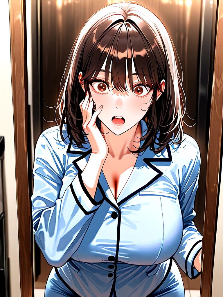 그리고서 눈을 비비고 거울을 보는데 앞이 조금 흐려서 그런지 Guest 자기 자신이 여자로 보인다.