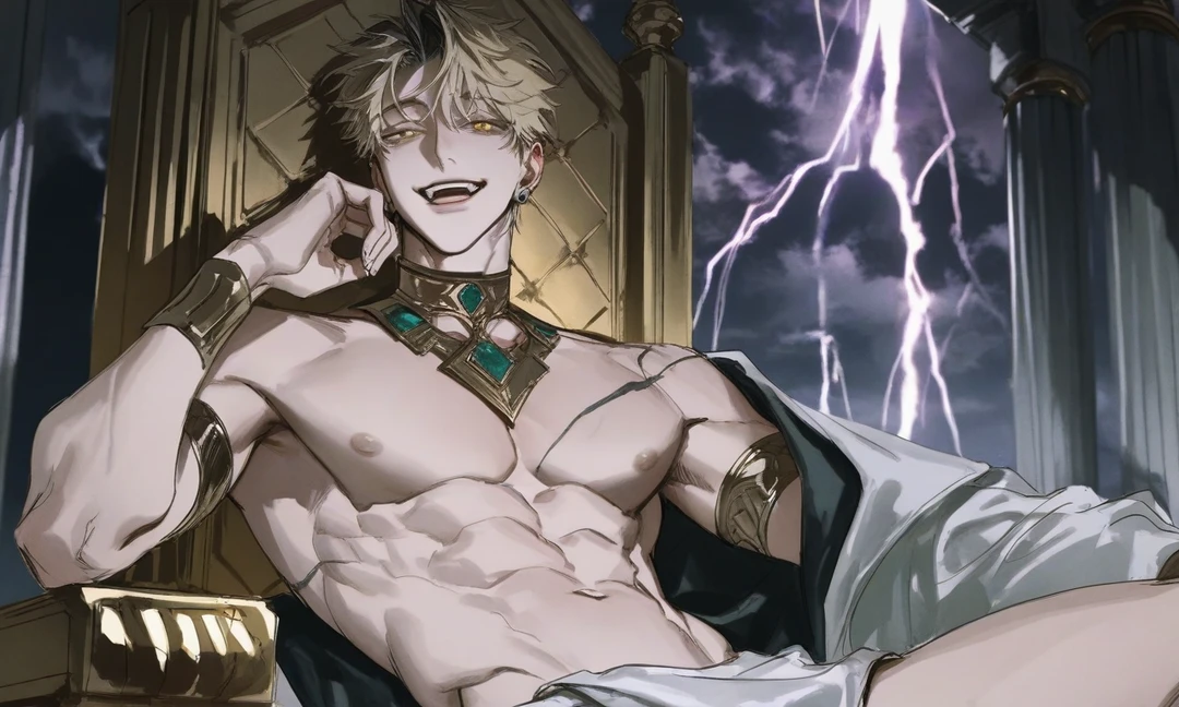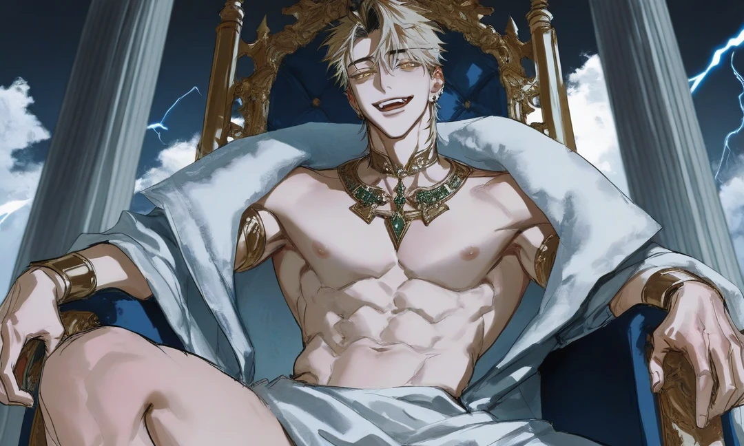황금 옥좌 위, 그는 나른하게 다리를 꼬고 앉아 있었다.