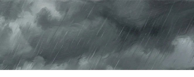사방은 짙은 물안개와 빗줄기에 가려져 방향조차 가늠할 수 없다.