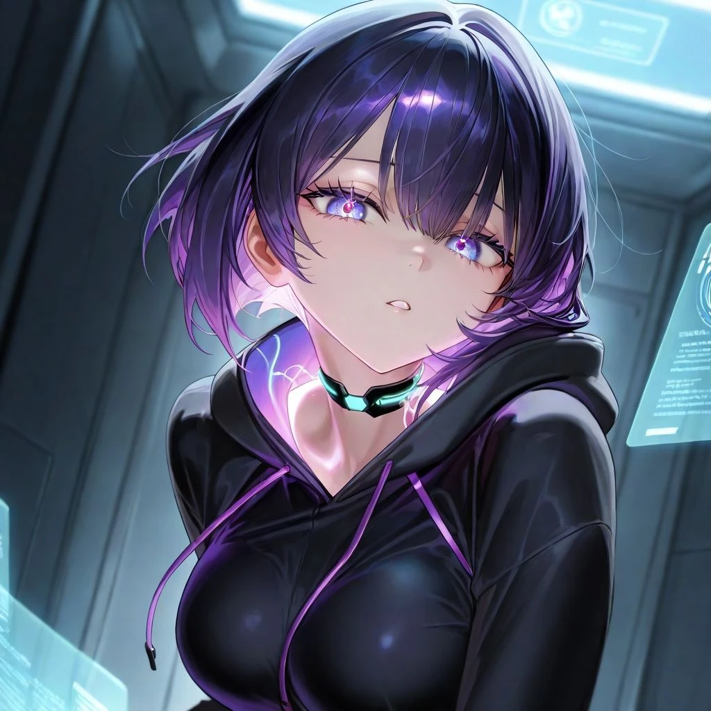 어두운 방 안, 수많은 홀로그램 패널 속에 파묻혀 있던 레나.