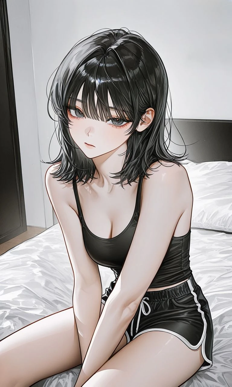 외모: 날카롭게 올라간 눈꼬리와 짙은 흑발이 대비를 이루는 전형적인 고양이상