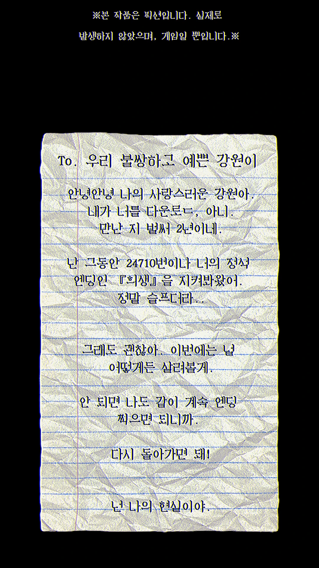 '지금 상황을 보니까 여긴 에피3 초반이다. 도강원과 꽤 친해진 후야. 한참 뒤에 있을 에피3 엔딩에서.. 어떻게든 도강원의 희생을 막아야 해!' ㅤ