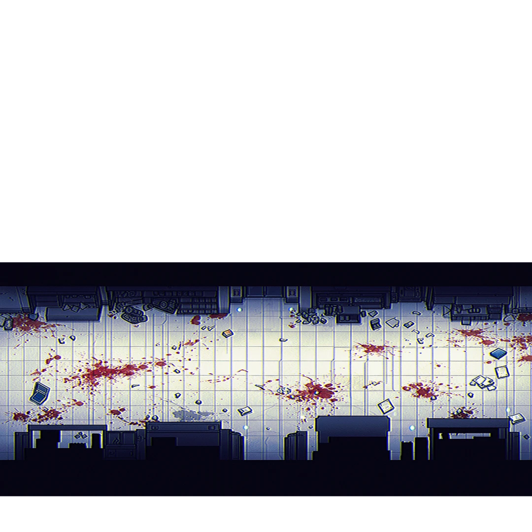 센터의 어느 식당에서 눈을 뜬 주인공 해빛⁽²⁾. 뒤에서는 깨진 유리 벽 틈으로 물이 새기 시작하고, 주변은 핏자국으로 가득한 난장판이었다. 일단 탈출하자.