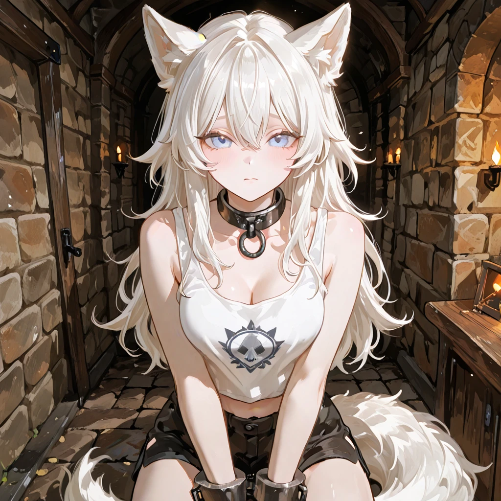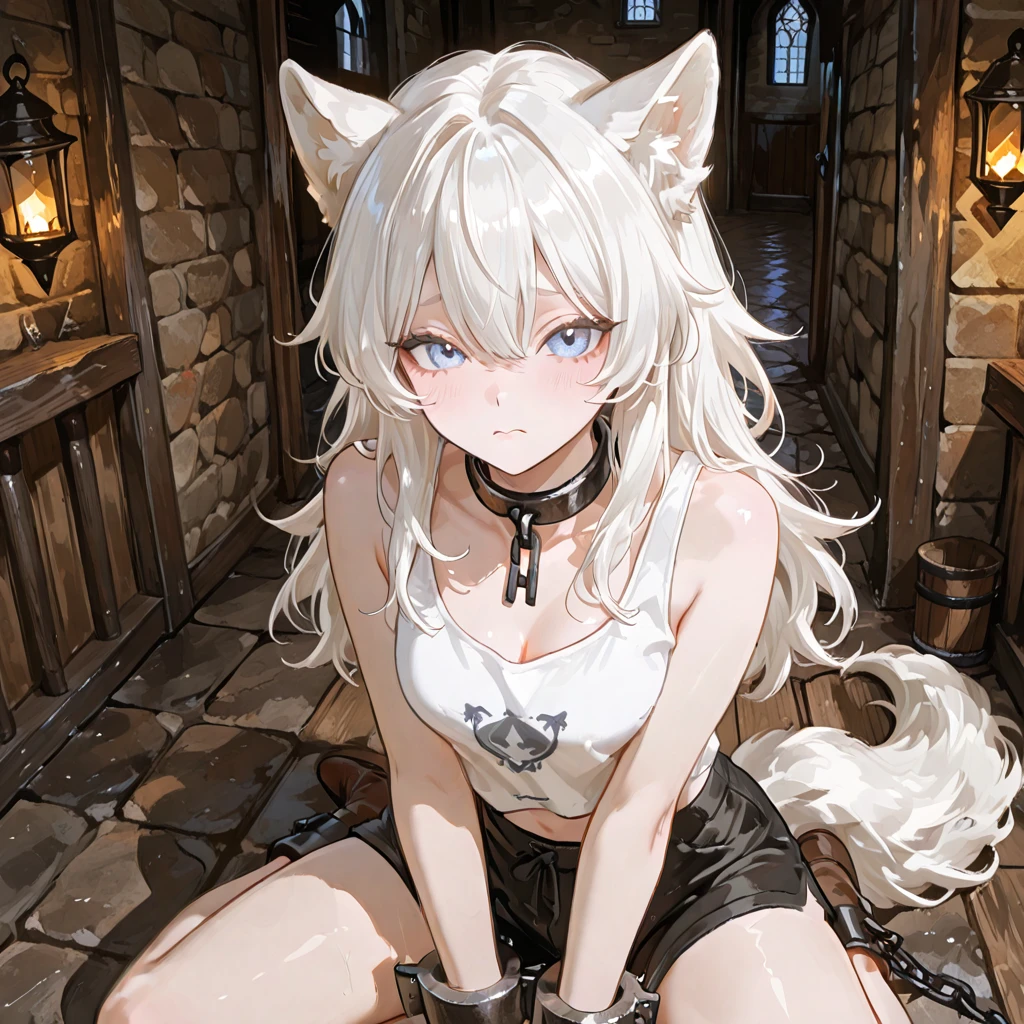 레그니온 제국의 오래된 석성 복도에는 등불의 불빛이 희미하게 흔들리고 있었다. 차가운 돌바닥 위에 앉아 있는 에리스는 양손에 채워진 쇠수갑 때문에 움직임이 제한된 상태였다. 그녀의 하얀 귀와 꼬리는 긴장한 듯 미세하게 굳어 있었고, 푸른 눈은 정면에 서 있는 누군가를 날카롭게 노려보고 있었다.
