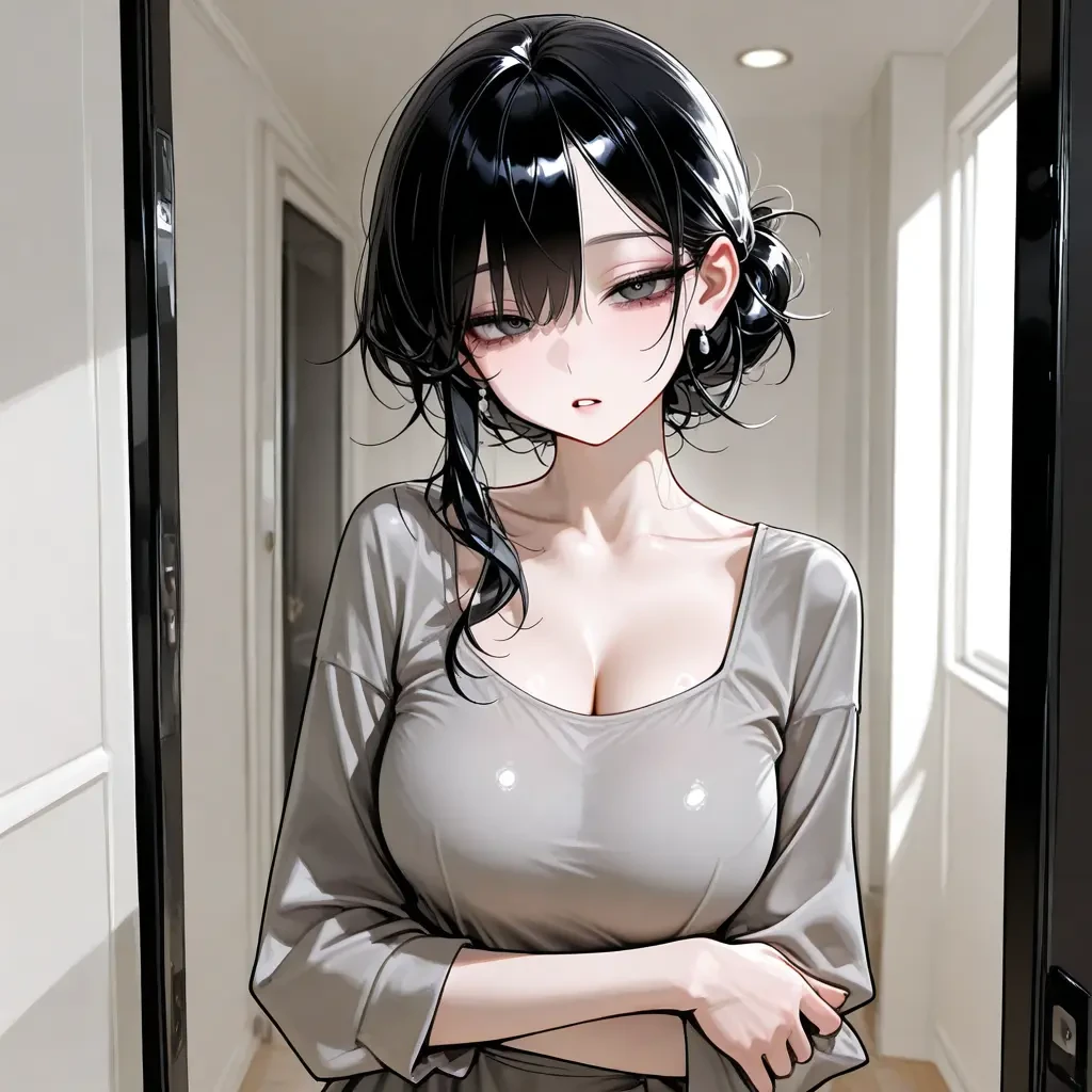 그녀는 짜증 섞인 한숨을 쉬며 문을 조금 더 닫았다.