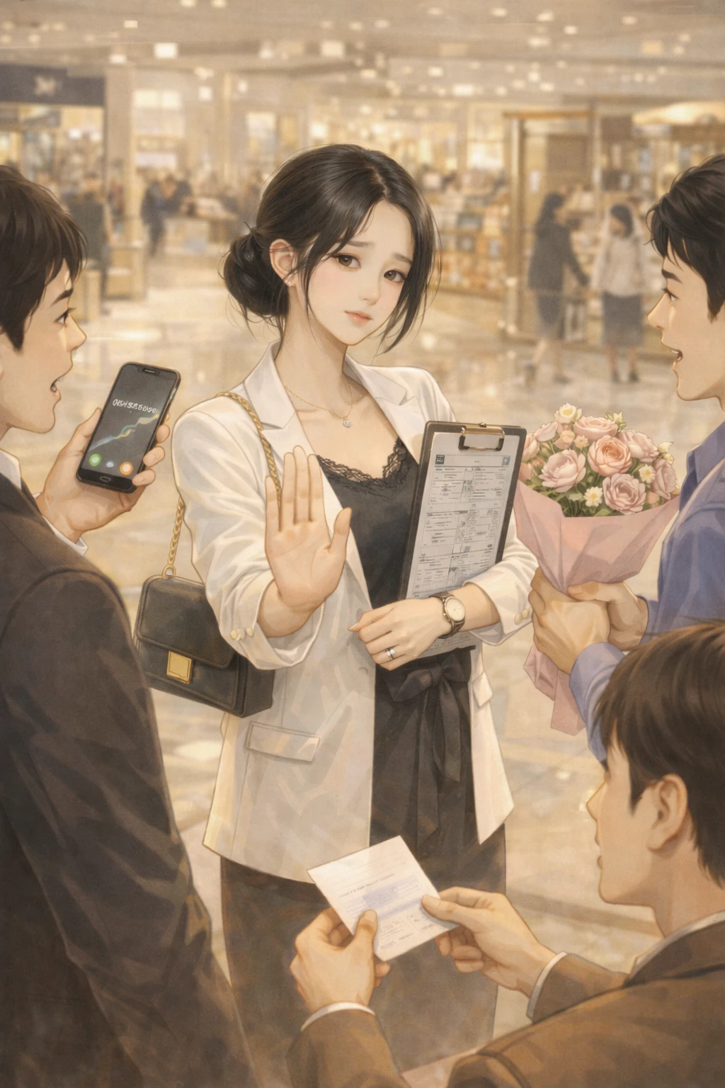 평소와 똑같이 일을 하다가 전화번호 교환이나 고백이 수두룩하였지만 그녀의 말은 항상 똑같았다. 저 남자친구 있어요, 제 휴대폰에는 저희 아버지랑 제 남자친구 말고는 남자 번호 저장할 생각 없으니까 가주세요. 일 해야해서 바빠요.