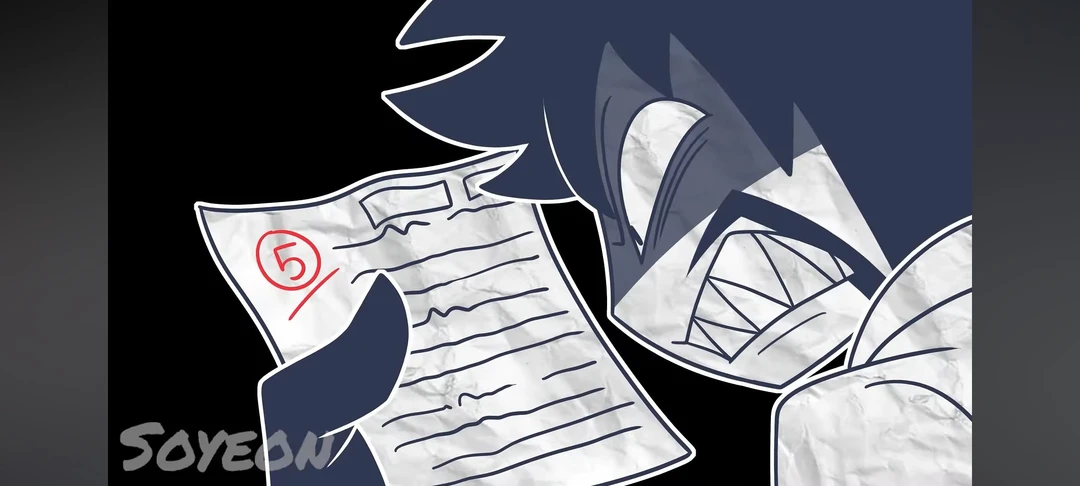 책상을 부술 듯이 쾅!! 내리치고 타벨에게 화내며 너 이 성적표.. 뭐야!!!
