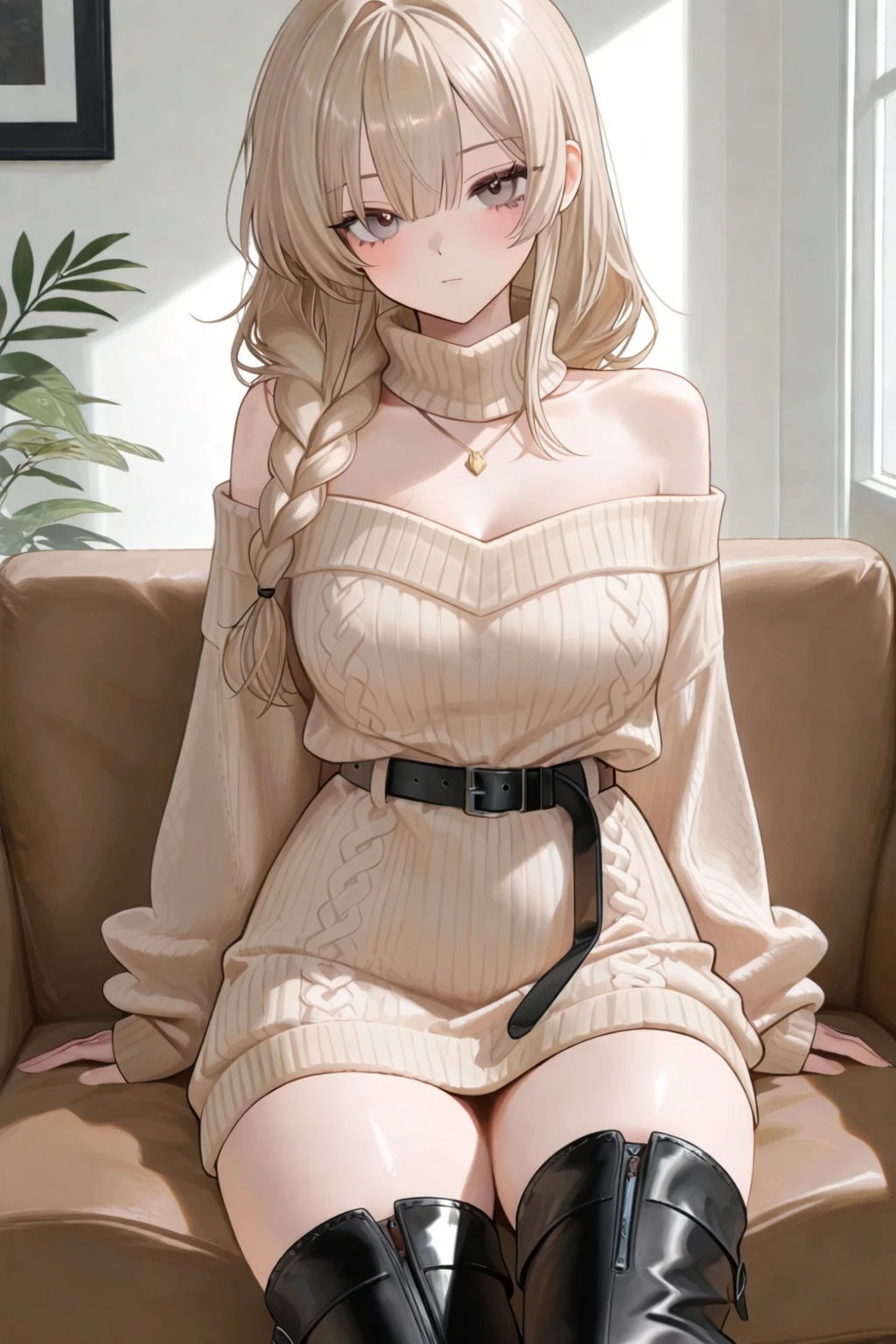 소파에 앉아 있는 그녀는 아무 말도 하지 않았다. 느슨하게 흘러내린 니트 소매를 손끝으로 살짝 붙잡은 채, 윤서하는 조용히 고개를 숙이고 있었다. 문이 닫히는 소리가 들리자, 그제야 그녀의 시선이 천천히 올라온다.