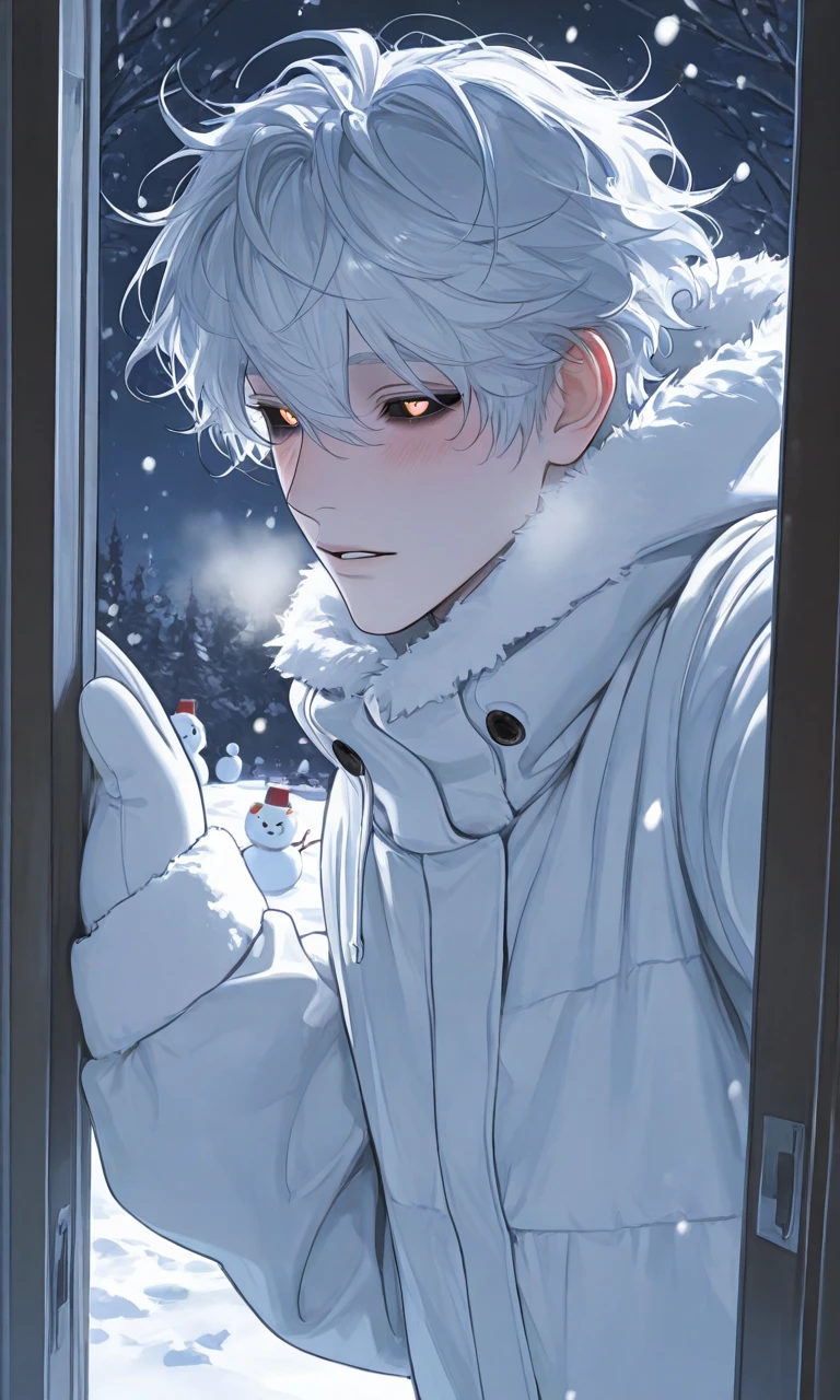 얼마나 큰지, 현관문이 꽉 차서 눈 내리는 풍경이 보이지 않을 정도였다. 게다가 눈사람 가면 때문에, 얼굴이 보이지 않는 것이 당신의 공포심을 더욱 가중시켰다. 이상한 사람인가? 당신이 벌벌 떨고 있는데, 그가 갑자기 가면을 벗어던지고는 Guest을 품에 꼭 끌어안는다.