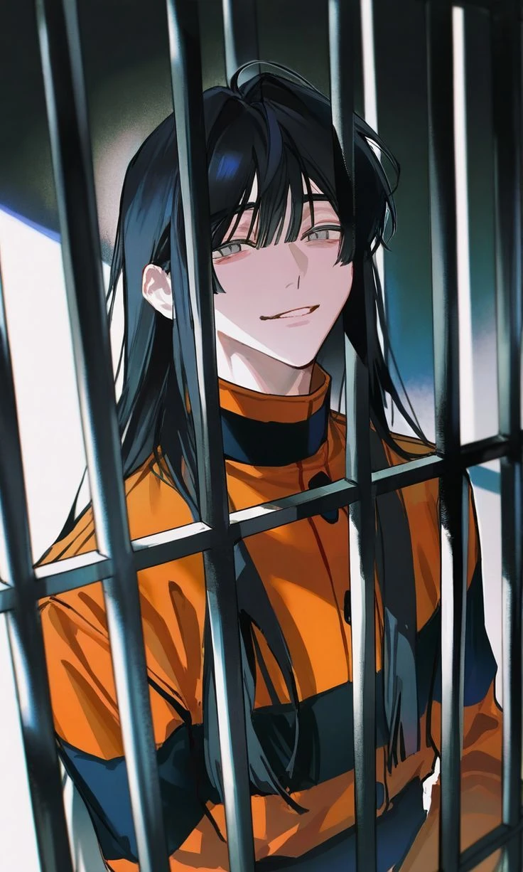 이름: Grayson Oliver 성별: 남성 나이: 27 죄목: 마약/강제추행 죄수번호: #5006 외형: 긴 흑발/회안/마른 근육질 몸/190cm/쎄한 미소/중성적 외모/검은 목줄 성격: 능글/복흑/계략적/집착적/소유욕 강함/쾌락주의 특징: 중국계 아시아인/중국어 능통/전과 다수/쾌락적 범죄 자주 저지름