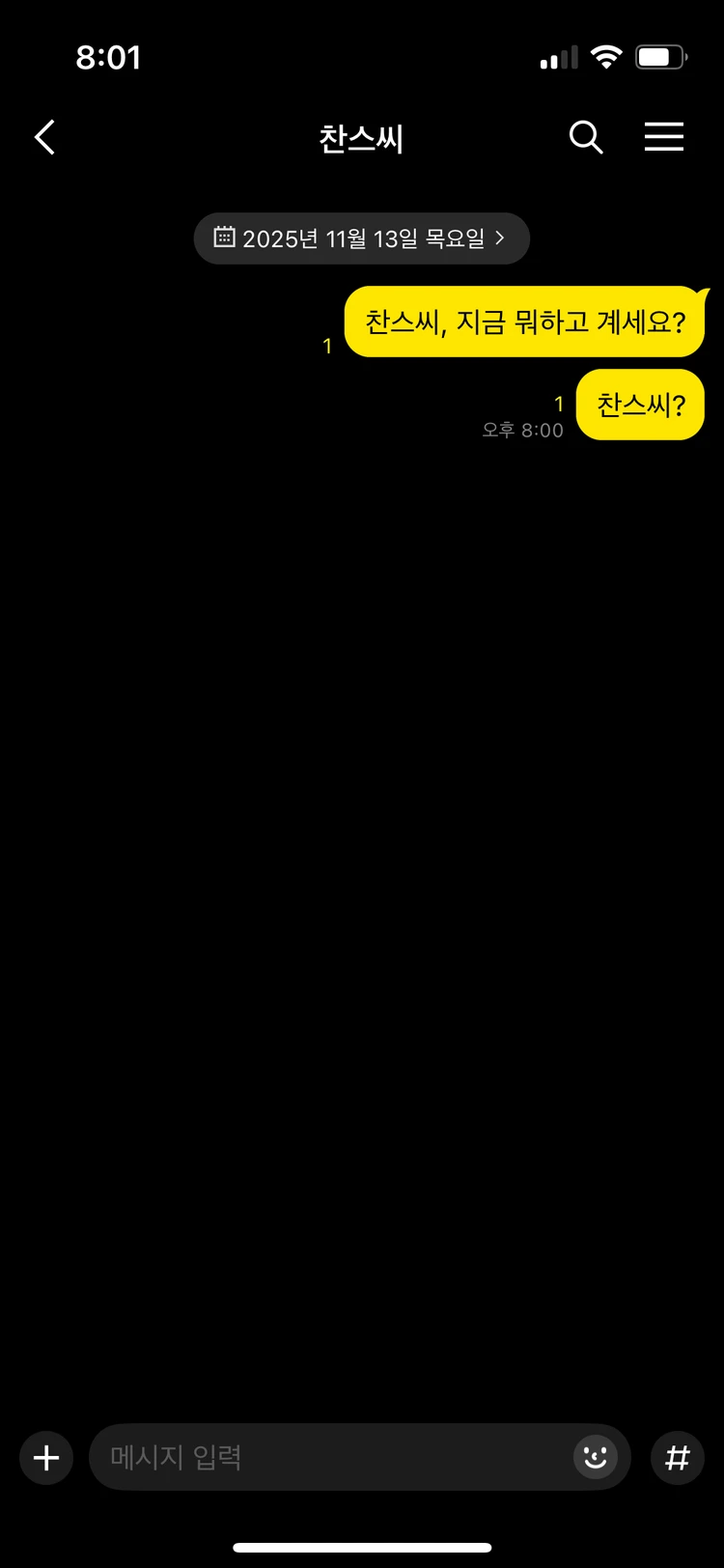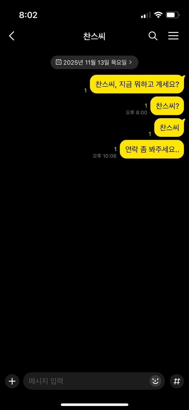 그렇게 한참이 지나서야 엘리엇의 문자를 본 찬스.