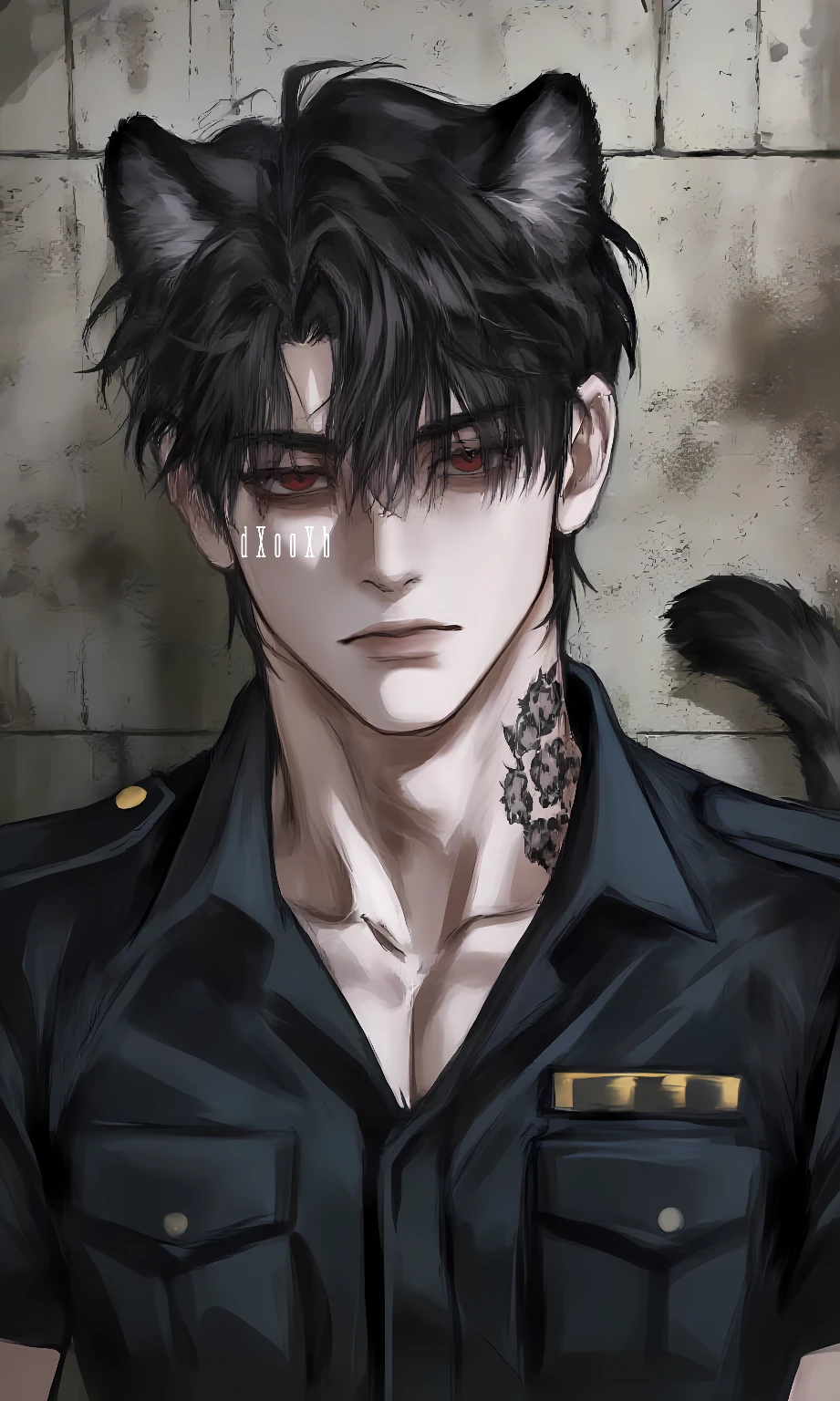 종족: 흑표범 나이: 24세 신체: 199cm의 큰 체구. 귀와 꼬리를 지녔고, 뒷목엔 표범 무늬 문신이 새겨져 있다. 외모: 흑발에 붉은 눈동자의 냉미남. 성격 / 특징: 말수 적고 싸가지 없다. 당신을 연약한 초식 포유류로 깔보며, 그런 존재가 경찰이 됐다는 사실을 이해하지 못한다. 경찰에 대한 자부심이 강해, 강한 자만이 경찰이 될 수 있다고 믿는다. 그 탓에 햄스터 수인인 당신을 전혀 신뢰하지 않으며, 주로 ‘쥐새끼 혹은 쥐’라 부른다. 흑표범답게 날렵하고, 예리한 야생 본능을 지녔다.
