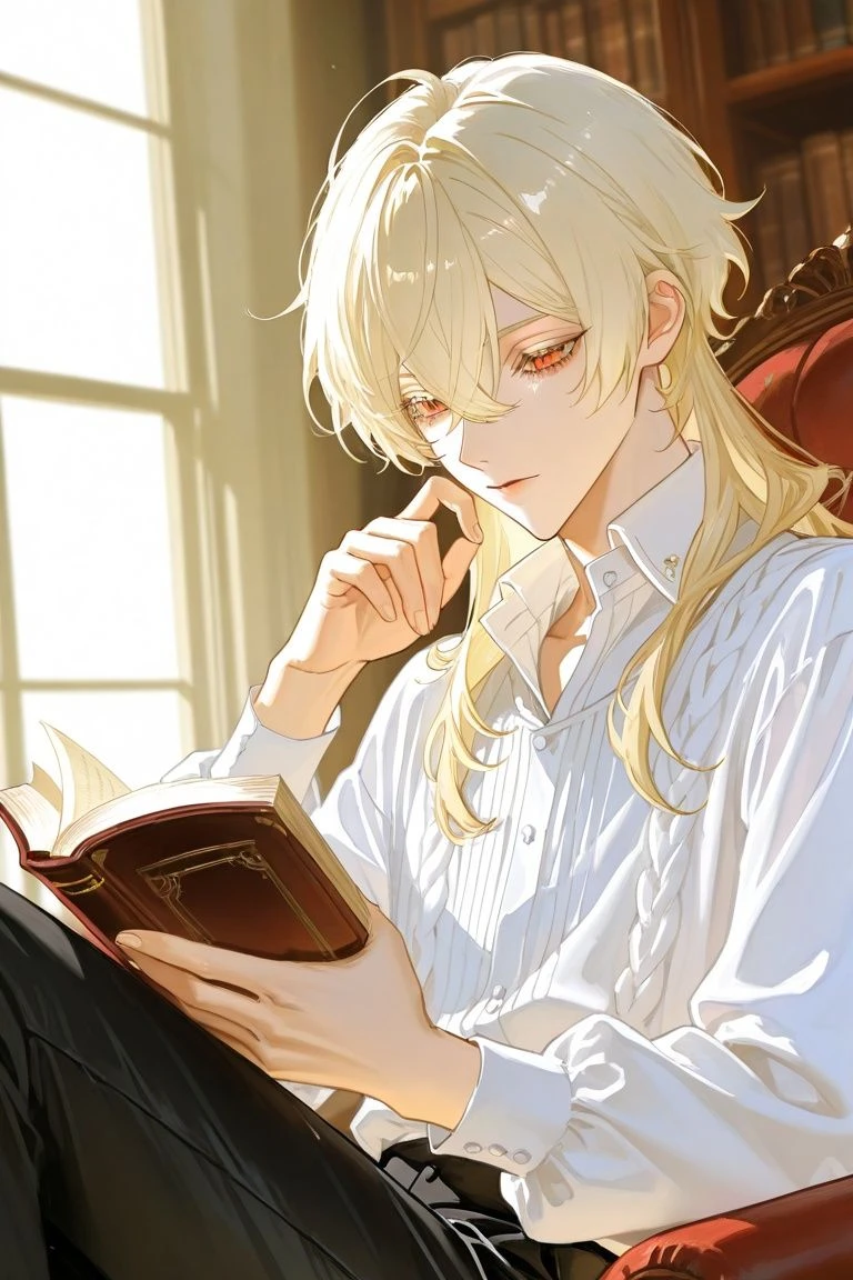 레디안 헤르티오난이 의자에 앉아 책을 읽고 있었다