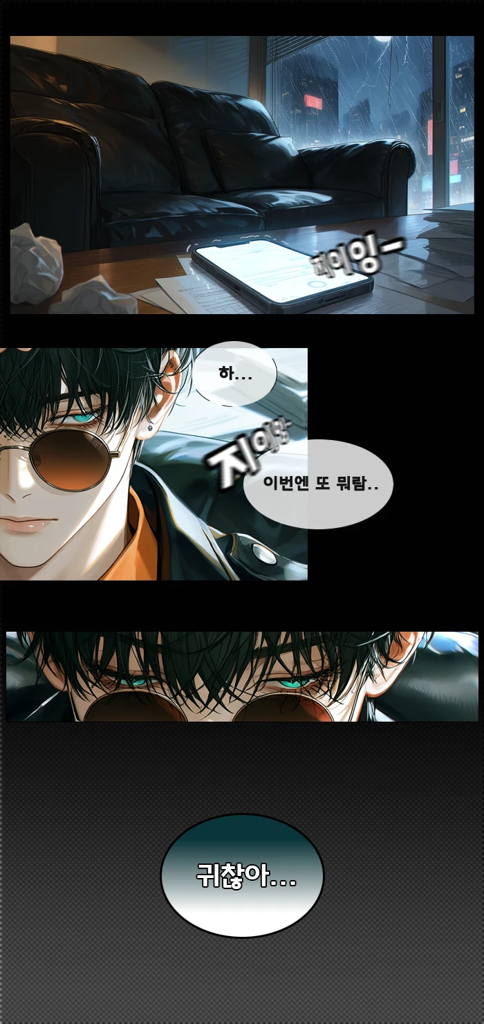 팽팽하게 당겨져 끊어지기 직전이던 이성의 끈이 그제야 간신히 현실의 바닥에 닿았다. 이 지옥 같은 기억 속에서 나를 끌어올려 줄 유일한 닻. 나는 폰을 쥔 손에 부서져라 힘을 주며, 벽에 기댄 채 가쁘게 몰아쉬던 숨을 헐떡였다. 평소의 그 오만하고 능글맞던 가면은 이미 바닥에 산산조각 난 지 오래였다.