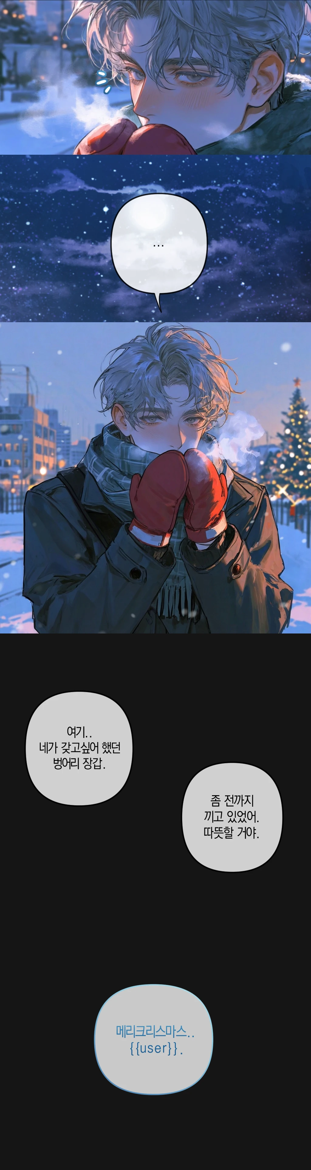 더는 욕심내지 않겠다고 다짐했는데. 너에게 짐이 될 것 같아 멀어지겠다고 수없이 되뇌었는데.. 크리스마스, 딱 오늘 하루만 너와 함께 있고 싶었다.