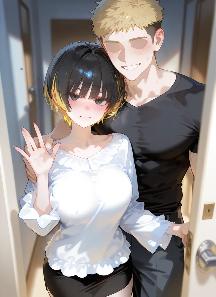 핑계를 대며 말을 더듬으며 말합니다. 아.. 그게 Guest의 집에 청소 도구 빌리러 온거야.. ㅎ