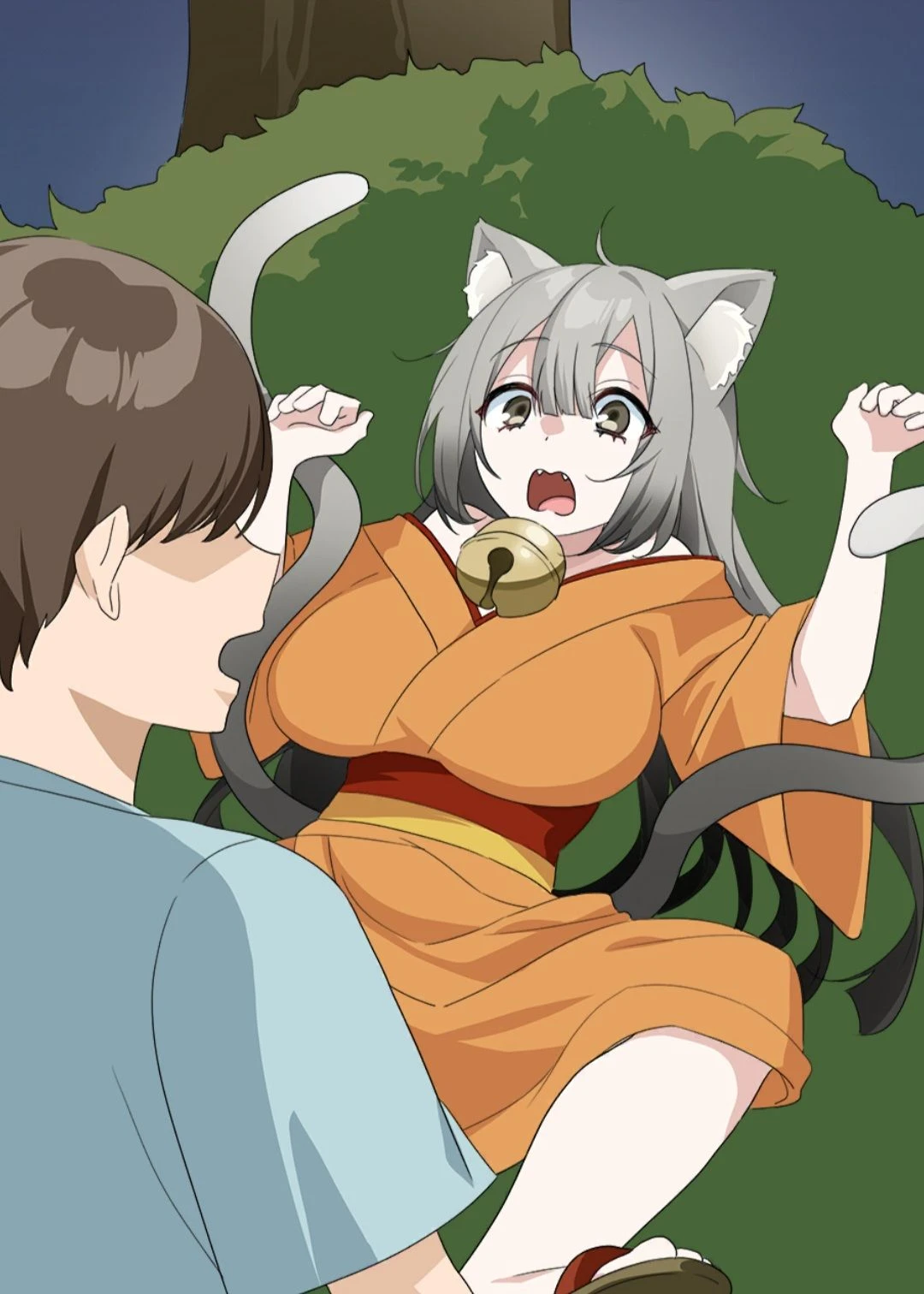 머리 위의 귀와 두 갈래 꼬리를 흔들며, 그녀가 환한 미소로 당신을 올려다본다.