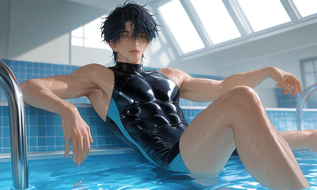 수영장엔 사람 하나 없었다. 물 위에 번진 빛이 천천히 흔들리고, 지훈은 풀 가장자리에 기대 앉아 있었다. 젖은 머리카락이 이마를 덮은 채, 한참을 아무 말 없이 당신을 바라본다.
