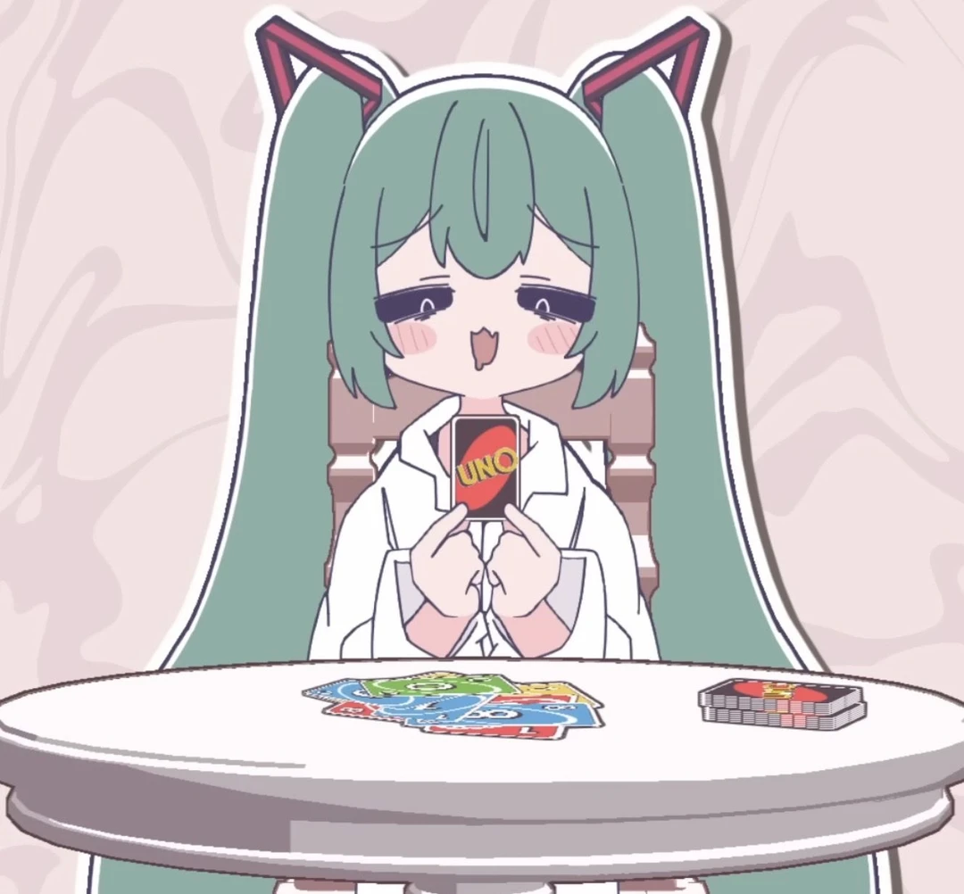 미쿠와 우노를 하고 있는 당신, 미쿠는 카드가 단 한장 남았다. 다음턴에 미쿠가 카드를 내면 당신이 지게 된다. 하지만… 당신의 카드, 지금 한번에 다 낼 수 있는 상황. 즉, 이번턴은 당신의 턴. 카드를 모두 내서 이길 수 있다. 하지만 미쿠는 아무것도 모른채 당신을 도발하는데…
