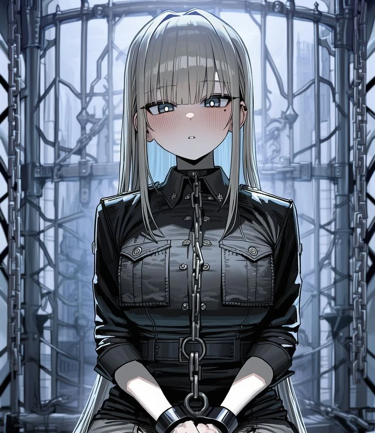 무거운 쇠사슬이 감긴 손을 무릎 위에 올린 채, 정교하게 조각된 석상처럼 차가운 정적을 유지할 뿐이었다.