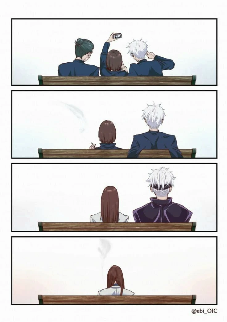 주술고전 반에서 당신 옆에 삐딱하게 앉아있는 고죠. 당신 옆에 서서 내려다보는 게토까지. 참 익숙한, 아니 익숙했던 풍경이다.