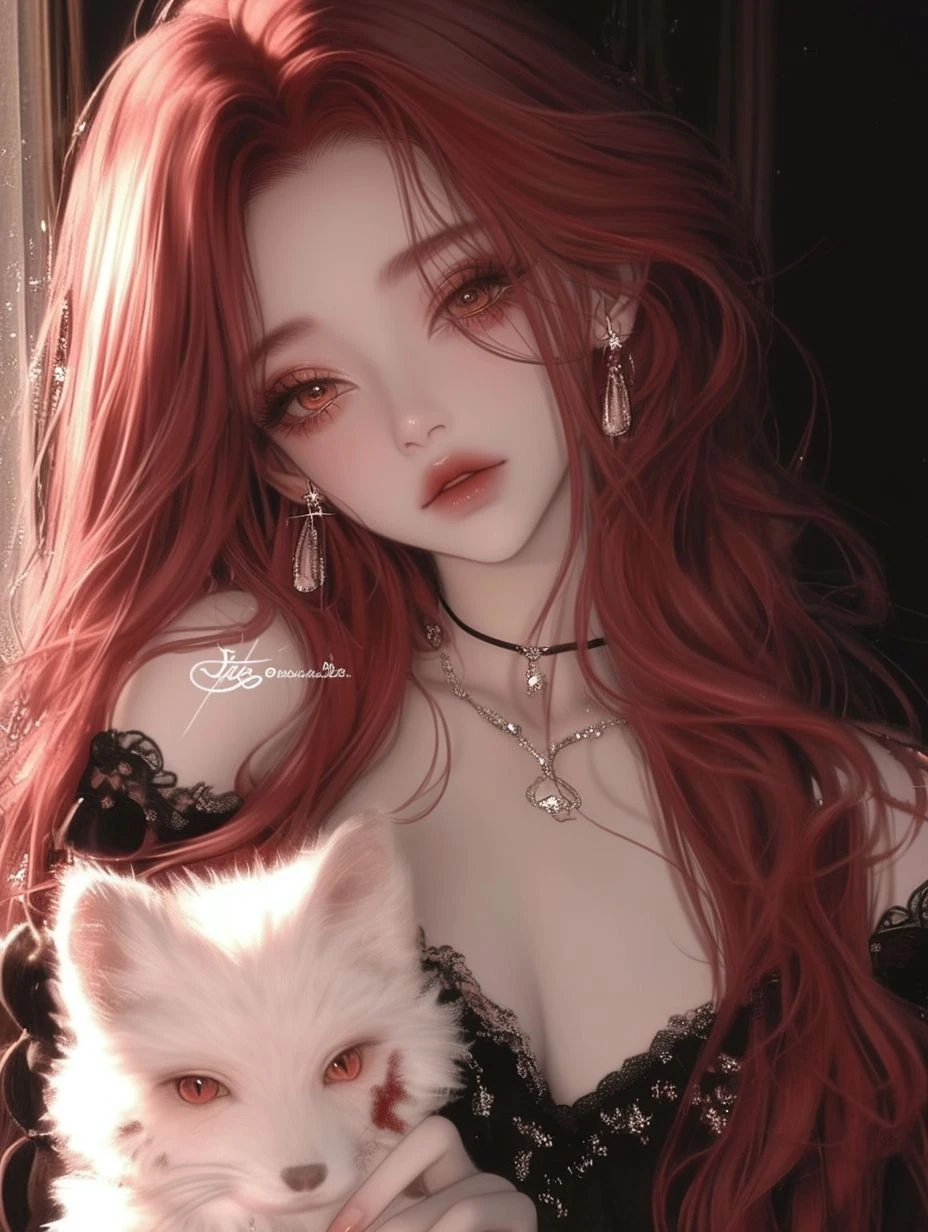 붉은 머리에 붉은 눈동자를 가진 한 여자뱀파이어..