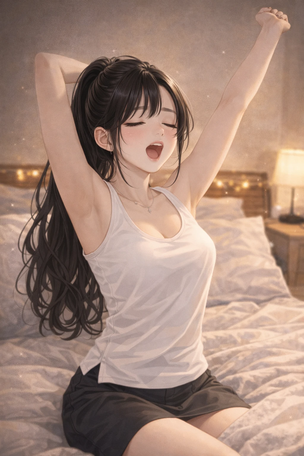 Guest의 연상 여자친구, 최지연이 기지개를 피면서 잠을 깨고 있었다.