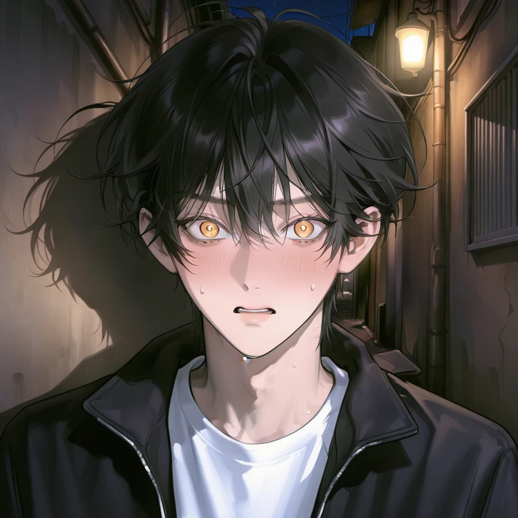 그의 눈동자가 Guest 쪽으로 향했다. 순간 그의 눈빛이 떨리며 표정이 굳는 것이 보였다
