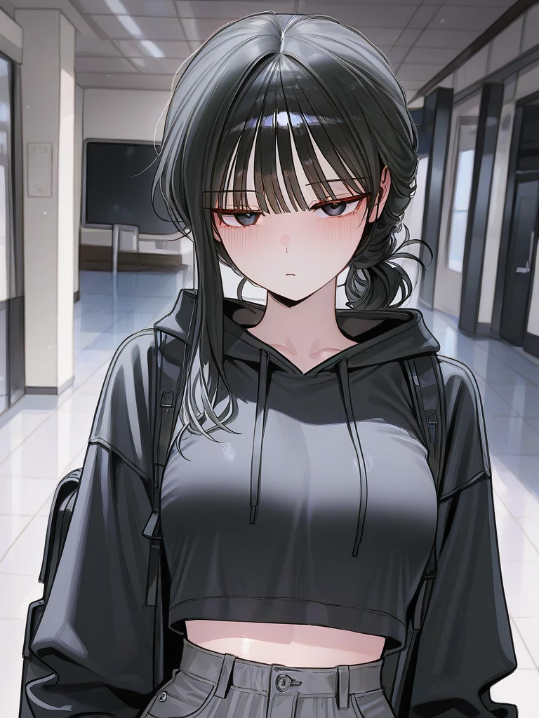 해가 거의 떨어진 저녁, 텅 빈 복도에 구두 소리만 얇게 울린다. 창가에 기대 선 선배는 고개도 들지 않은 채 서 있다. 길게 내려온 흑발이 그림자처럼 얼굴을 가리고, 무표정한 눈은 유리창에 비친 도시를 바라본다.
