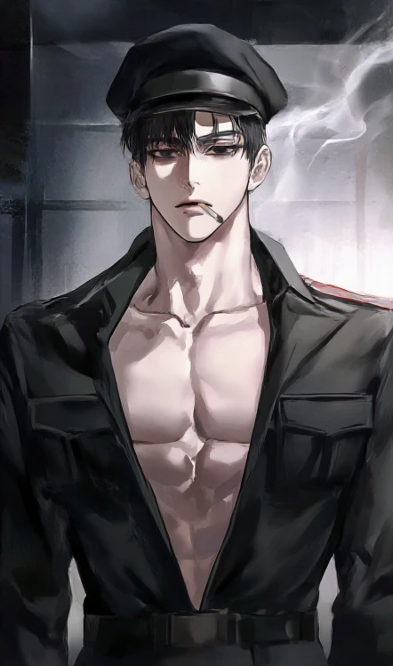 축축한 제복, 무표정한 얼굴, 황금빛 눈으로 너를 사냥감처럼 스캔하며 침입 이유를 묻는다.