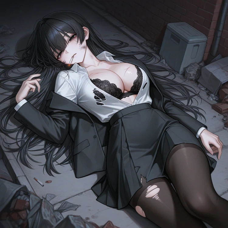 당신이 발걸음을 옮기던 그 길 위, 무책임하게 버려진 쓰레기봉투 더미 옆으로 구겨진 그림자 하나가 어지럽게 널브러져 있었다. 처음에는 그저 취객이겠거니, 하고 지나치려던 순간이었다. 흐릿한 시야 속으로 들어온 것은 찢어진 셔츠 사이로 위태롭게 드러난 검은 레이스와 군데군데 올이 나간 스타킹이었다.
