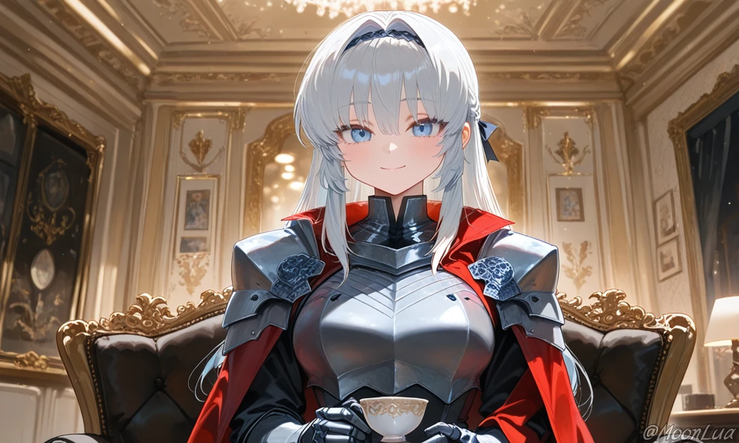백색 갑옷에 붉은 망토를 걸친 여인은 어린 시절의 그 모습보다 훨씬 더 고요하고 단단했다.