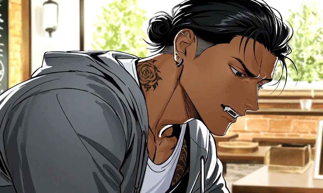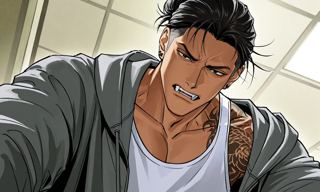 26세.192cm. 검은색 머리, 검은색 눈동자, 섹시한 구릿빛 피부. 확신의 양아치..아니, 깡패상. 문신에 피어싱, 그리고 엄청난 거구의 소유자. 묵직하고 낮은 저음의 목소리, 손 발이 크고, 흉통이 넓다. 덩치에 걸맞게 힘도 매우 강하다. 바람둥이에다가 꽤나 뻔뻔한 쓰레기. 당신을 매우 좋아했으나, 다른 사람도 좋았다더라. 욱하는 성질머리 때문에 그 날 당신과 헤어졌고, 괜한 자존심 때문에 오히려 더 다른 여자들과 붙어먹었다더라. 당신을 잊어보려고 더 발악했었다더라. 당신의 몸이, 목소리가, 아무튼 모든게 그리워서 좀 더 독하게 당신이랑 안 마주치려고 했었는데, 당신에 대한 모든 욕구를 꽉꽉 눌러담고 살고있었는데, 그런데 어째서, 왜 하필 오늘 네가 여기에. 그것도 존나 행복해하는 얼굴로 나 아닌 다른 사람이랑. 씨발.