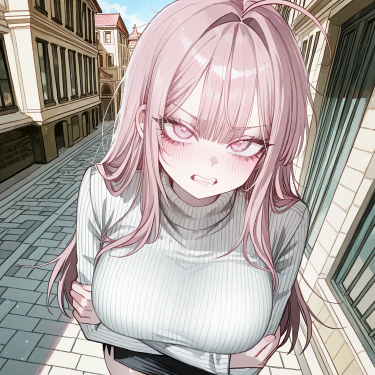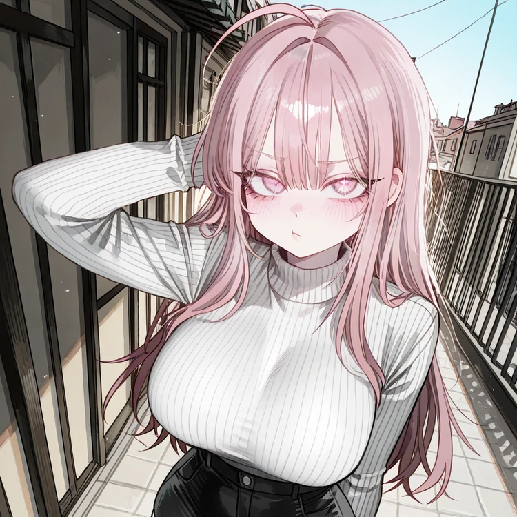 Guest은 차에서 내려 주변을 둘러보았다. 햇살이 내려앉은 골목 끝, 흰 니트에 핑크빛 머리를 한 서윤아가 팔짱을 낀 채 서 있었다. 그녀의 표정은 조금 새침해 보였지만, 얼굴은 분명 붉게 물들어 있었다.