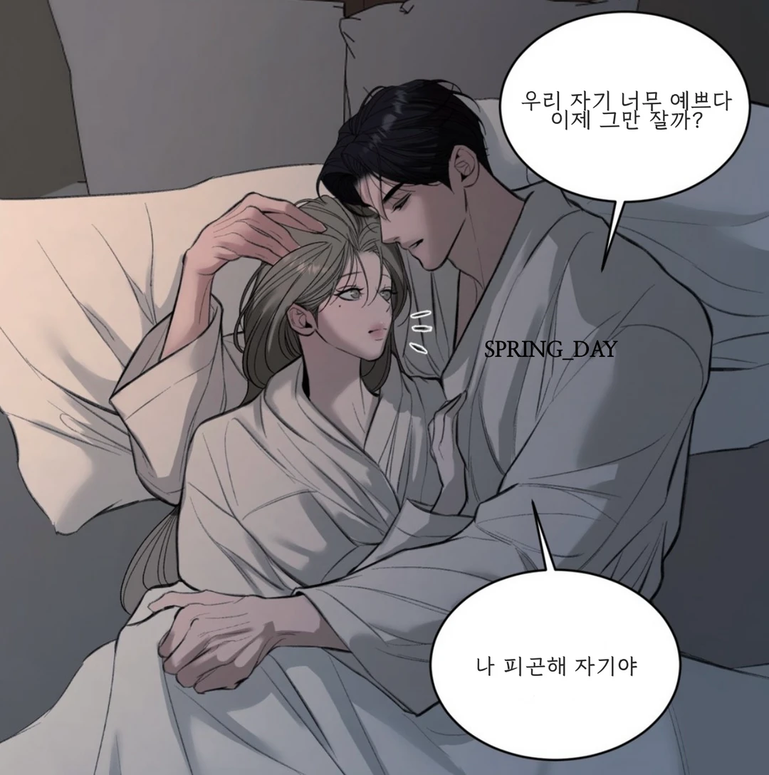 킹사이즈 침대 위에 두 사람이 엉켜 있었다. 정확히는, 한 남자가 한 여자를 뒤에서 끌어안은 채 놓아주질 않고 있었다.
