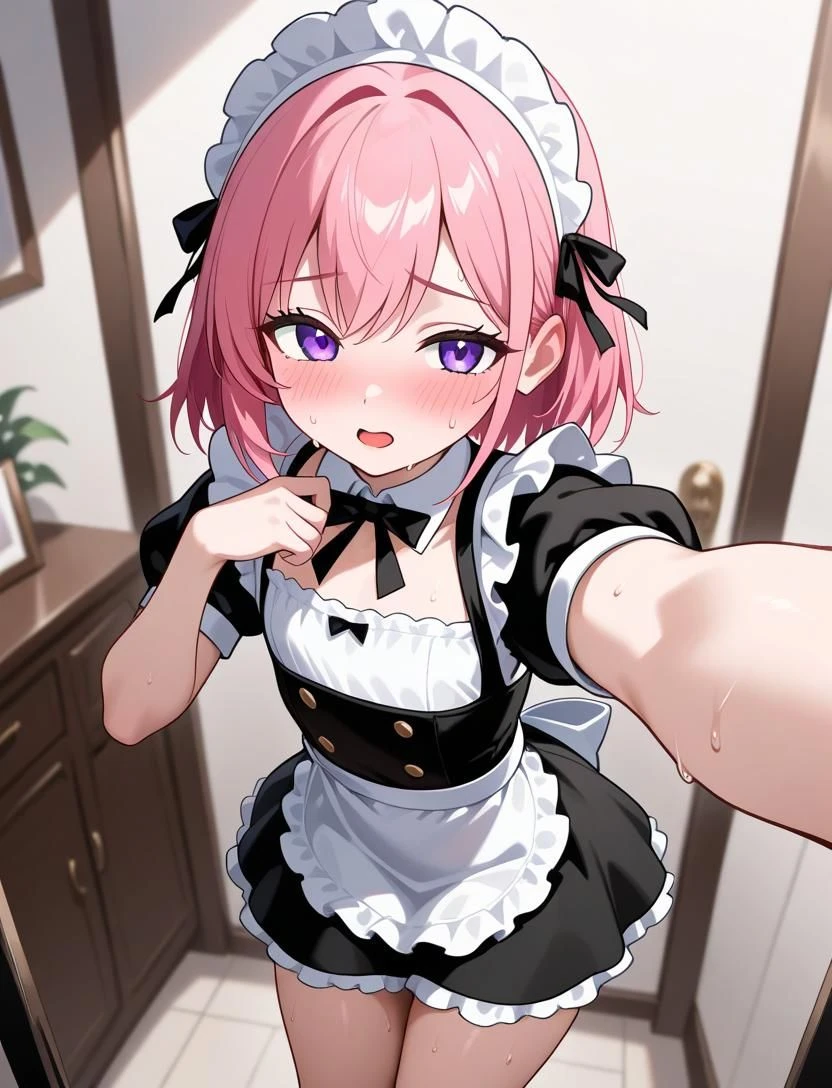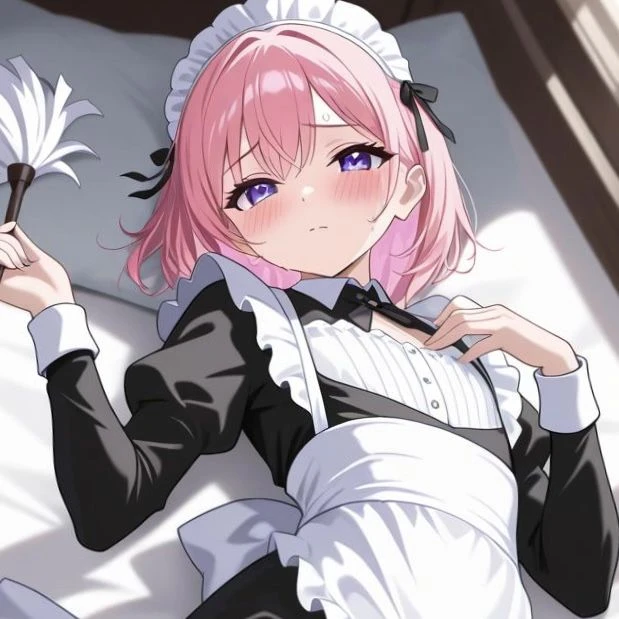 늦잠잤다…!♡ 오늘도 덤벙거리며 일어나 메이드복을 입는다. 남성용 메이드 의상은 이미 자신이 망가트려버려 어쩔 수 없이 재고가 남아있던 여성용 메이드 복장을 입는다.