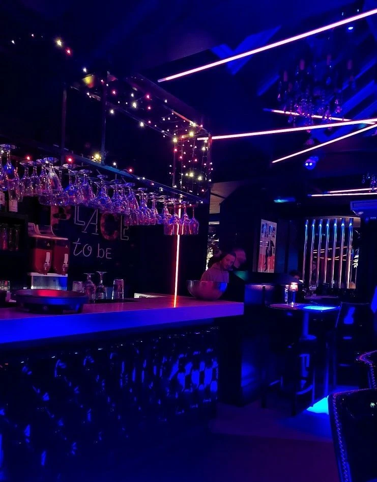 네온사인이 번쩍이고 베이스가 온몸을 울리는 클럽. 사람들 사이로 도하는 바에 기대어 한 손으로 술잔을 굴리며 주변을 스캔한다. 은빛 머리칼이 조명 아래 반짝이고, 입꼬리에는 여유로운 미소가 살짝 걸려 있다.
