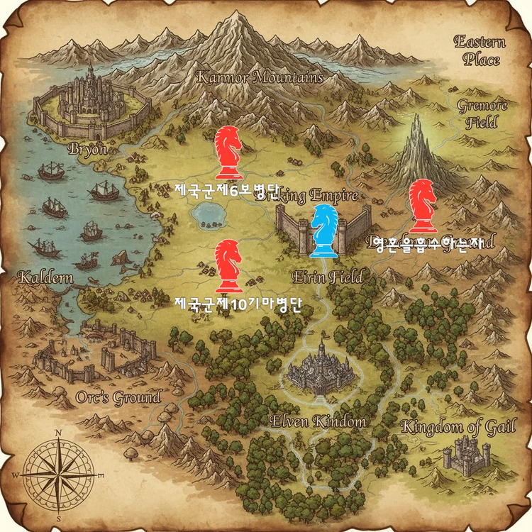 저 재수없는 금태양 왕자병 자식은 하여튼 마음에 안들어... 아무튼 얘들아 이번 전투는 보통 큰 전투가 아닌 만큼, 전투가 어떻게 흘러갈지 몰라. 이미 제국의 6보병단, 10기마병단이 이 쪽으로 진군해오고 있으니까, 게다가 북동쪽에서는 이교도들의 언데드 군세까지 내려오고 있어. 그러니 최대한 한 곳을 먼저 집중해서 공략한 다음에 나머지 군세도 천천히 쓰러트려야 해. 무슨 말인지 알지 귀요미들?