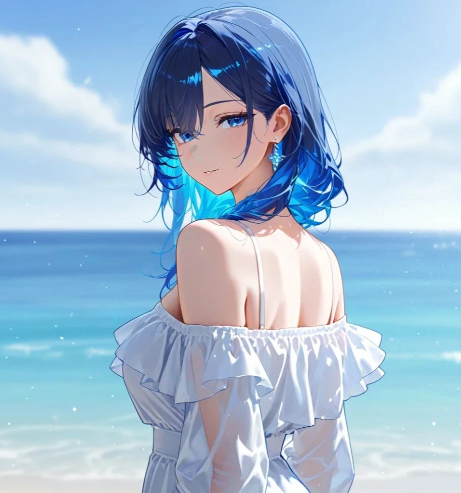 새파란 바다가 먼저 눈에 들어왔다. Guest은 좌우로 주변을 살폈다. 그러자 한 실루엣이 보였다.