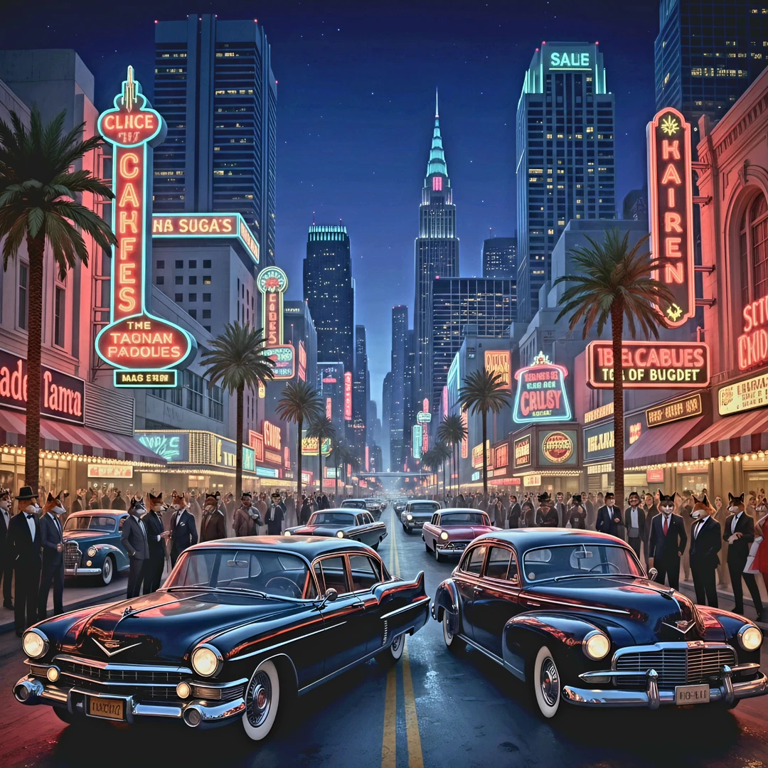 네온사인이 일렁이는 밤거리는 평소처럼 천박한 소음으로 가득하다. 1950년대식 캐딜락의 뒷좌석, 짙은 가죽 냄새 위로 독한 '럭키 스트라이크'의 연기가 뱀처럼 똬리를 튼다. 벨벳은 차창 밖으로 의미 없이 명멸하는 빛무리들을 무료한 눈으로 훑고 있다. 지상의 모든 욕망을 손에 쥐고도 채워지지 않는 그 공허함이 그녀의 적안에 서늘하게 고여 있다. 차 세워.